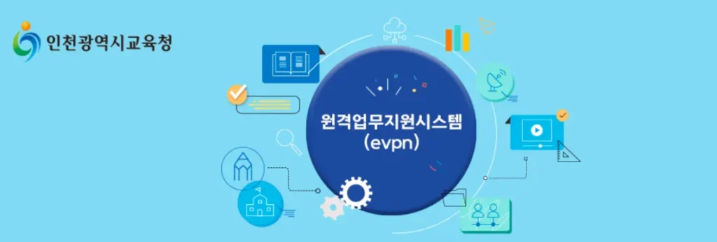 인천교육청의 EVPN 원격업무지원시스템은 인천교육청 소속 교직원분들이 집에서나 기타 외부에서 업무를 효율적으로 수행할 수 있도록 도와줍니다. 따라서 교직원분들은 eVPN의 사용 잘 익히고 이용해하세요.