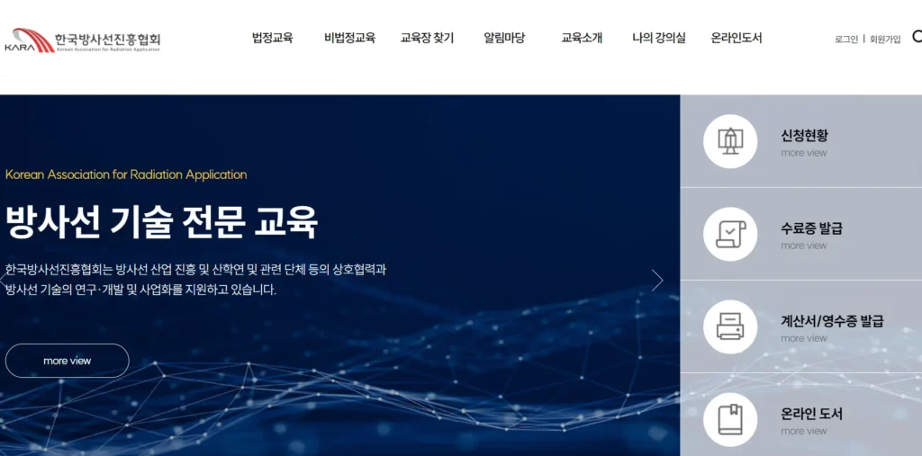 한국방사선진흥협회 교육시스템 보수교육은 방사선 관련 종사자들이 안전하고 효율적으로 업무를 수행하는 데 필수적인 교육입니다. 관련 종사자라면 누구나 적극적으로 참여하여 지식과 기술을 갱신해야 합니다.