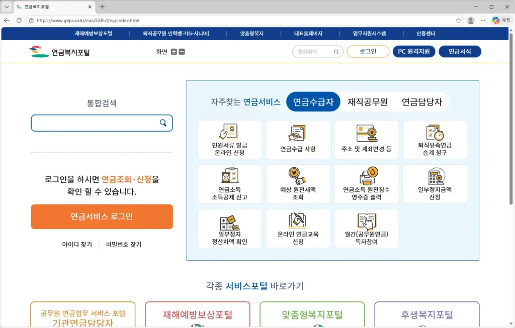 - 접속 대상: 재직 공무원, 연금 수급자(퇴직자)