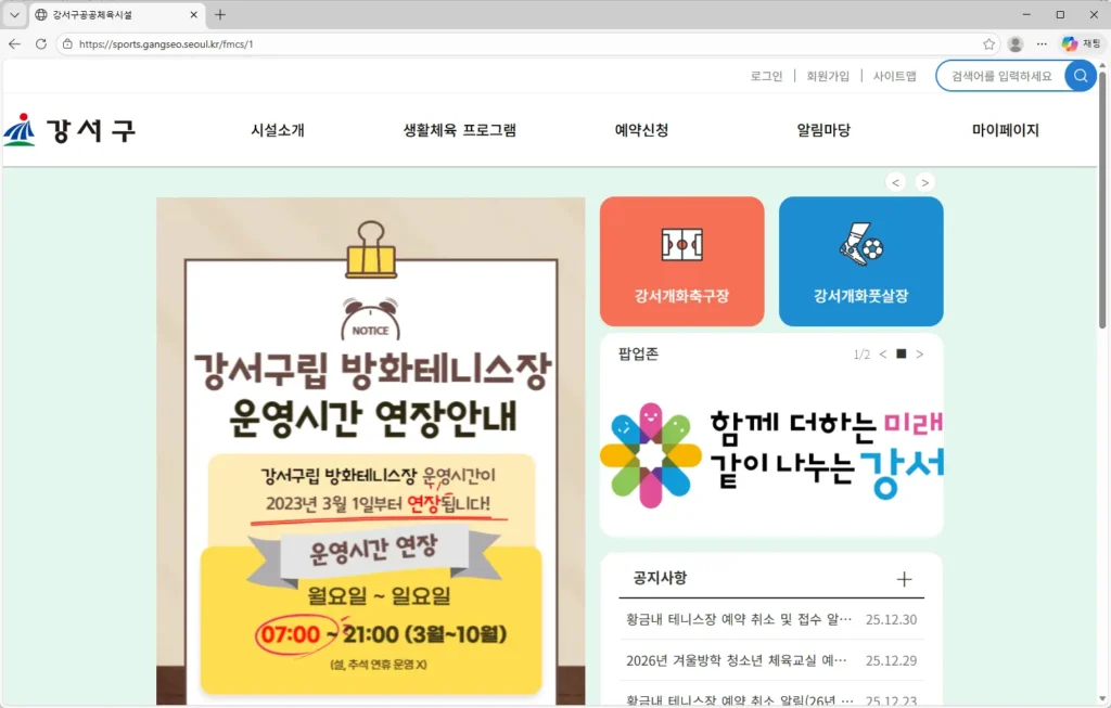- 공식 주소: sports.gangseo.seoul.kr